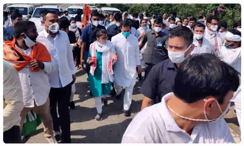 యూపీలోని హత్రాస్ కు కాంగ్రెస్ నేతలు రాహుల్ గాంధీ, ప్రియాంక గాంధీ గురువారం ‘లాంగ్ మార్చ్’ ప్రారంభించారు. ఈ జిల్లాలో 20 ఏళ్ళ యువతి దారుణ హత్యాచారానికి గురికాగా, ఆమె కుటుంబాన్ని పరామర్శించేందుకు వారు బయల్దేరారు. అయితే వీరి రాకను పసిగట్టిన యూపీ ప్రభుత్వం ఈ జిల్లాకు దారి తీసే అన్ని మార్గాలనూ మూసివేసింది. ఎక్కడికక్కడ బ్యారికేడ్లను ఏర్పాటు చేసింది. మీడియాకు కూడా నో ఎంట్రీ అని స్పష్టం చేసింది. హత్రాస్ కు దారి తీసే గ్రేటర్ నోయిడా వద్ద కాంగ్రెస్ నేతలు, ఆ పార్టీ కార్యకర్తల వాహనాల కాన్వాయ్ ని పోలీసులు అడ్డుకున్నారు. అప్పటికి హత్రాస్ చేరుకోవాలంటే ఇంకా 142 కి. మీ. దూరం వెళ్లాల్సి ఉంటుంది. కానీ.. రాహుల్, ప్రియాంక తమ పట్టు వీడలేదు. తమ వాహనాల నుంచి దిగి వారు కాలినడకనే ఈ జిల్లాకు లాంగ్ మార్చ్ మొదలు పెట్టారు. వందలాది పార్టీ కార్యకర్తలు వారిని అనుసరిస్తూ, దారి పొడవునా యూపీ సీఎం యోగిఆదిత్యనాథ్ కి వ్యతిరేక నినాదాలతో భారీ ర్యాలీని తలపించారు.