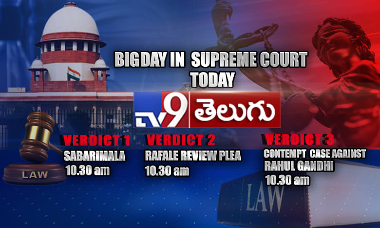 భారత సర్వోన్నత న్యాయస్థానం ఇవాళ బిజీబిజీగా ఉండనుంది. గత కొద్ది రోజులుగా ఎన్నో ఏళ్లుగా పెండింగ్లో ఉన్న తీర్పులను ఇస్తూ ప్రత్యేకతను చాటుకుంటుంది. తాజాగా దశాబ్ధాలుగా పెండింగ్లో ఉన్న అయోధ్య అంశానికి సంబంధించిన తీర్పును వెలువడించిన విషయం తెలిసిందే. ఇక ఇలాంటి చారిత్మక తీర్పులను వెలువరించేందుకు సుప్రీంకోర్టు మరోసారి రెడీ అయ్యింది. ఇవాళ ఒకే రోజు మూడు ప్రధాన కేసులకు సంబంధించిన తీర్పులను వెలువరించనున్నట్లు సుప్రీంకోర్టు రిజిష్ట్రార్ కార్యాలయం షెడ్యూల్ ప్రకటించింది. ఈ నెల17వ తేదీన సుప్రీంకోర్టు ప్రధాన న్యాయమూర్తి రంజయ్ గొగోయ్ పదవీ విరమణ చేయనున్న నేపథ్యంలో పలు ప్రధాన కేసుల పరిష్కారానికి ఆయన నడుం బిగించిన సంగతి తెలిసిందే.