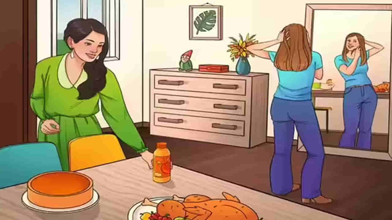 ఈక్రమంలోనే మెదడు పనితీరును మెరుగు పరచడానికి ఓ అద్భుతమైన ఆప్టికల్ ఇల్యూషన్తో మీ ముందుకు వచ్చాం. పైన ఓ చిత్రం కనిపిస్తుంది కదా. అందులో వంట గదిలో ఇద్దరు అమ్మాయిలు ఉన్నారు. ఒక అమ్మాయి డైనింగ్ టేబుల్ వద్ద ఉంటే, మరొక అమ్మాయి అద్దంలో తన ప్రతిబింబం చూసుకుంటుంది.