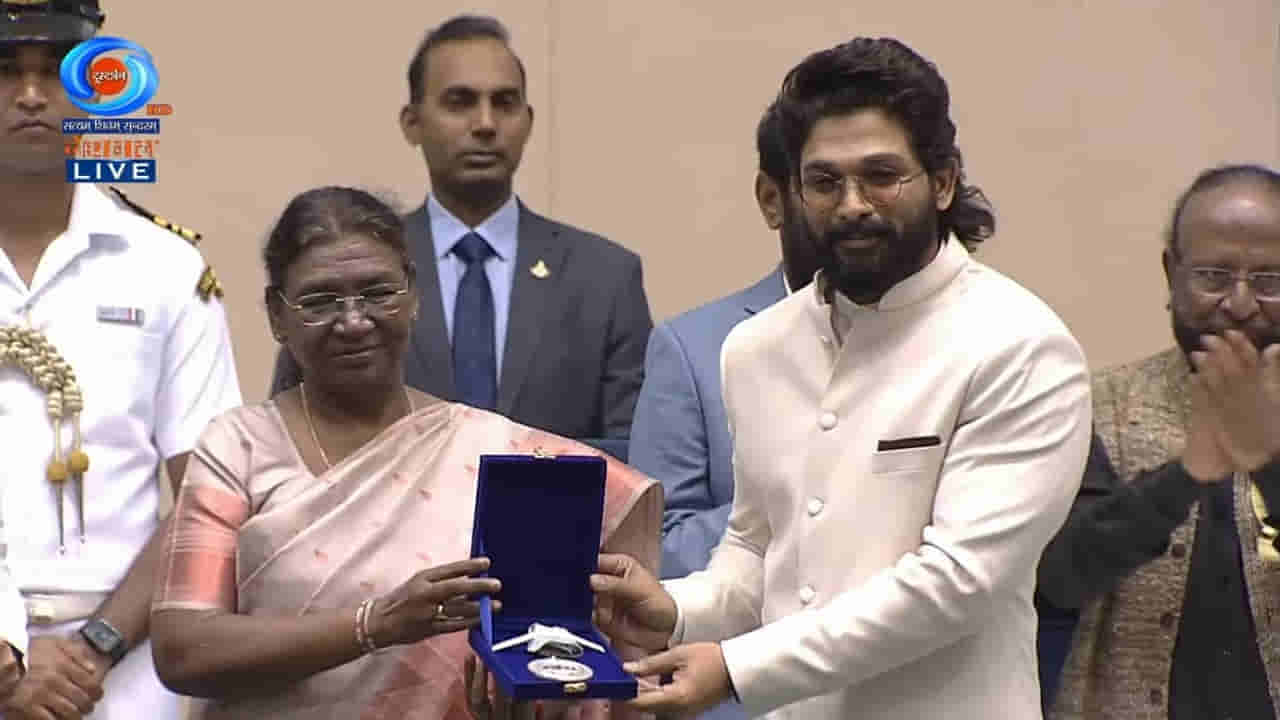 పుష్ప సినిమాకు గానూ ముర్ము చేతుల మీదుగా జాతీయ ఉత్తమ నటుడి పురస్కారం అందుకున్నారు అల్లు అర్జున్. తద్వారా 69 ఏళ్ల జాతీయ సినిమా అవార్డుల చరిత్రలో ఈ ప్రతిష్ఠాత్మక పురస్కారం అందుకున్న తొలి తెలుగు హీరోగా బన్నీ చరిత్ర సృష్టించారు.(Photo Courtesy: DD National)