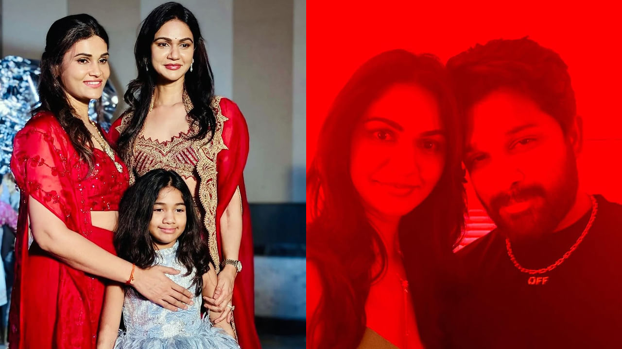 అందులో స్నేహ వివాహ వేడుకకు హాజరై పసుపు దంచుతున్న ఫొటోలను, అలాగే తన కూతురు అర్హ, అయాన్తో కలిసి పెళ్లికి వెళ్లి న ఫొటోలను షేర్ చేసింది. అంతే కాకుండా సంప్రదాయ దుస్తులు ధరించి.. అల్లు అర్జున్, అయాన్, అర్హ, తన ఫొటోలను కూడా ఈ బ్యూటీ షేర్ చేసింది.