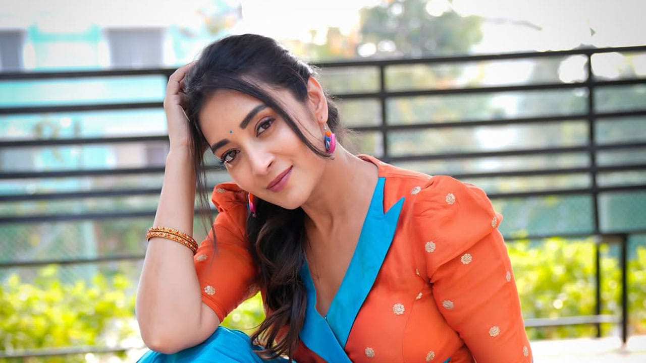 సరికొత్త డిజైన్ తో స్కైబ్లూ, ఆరెంజ్ కలర్ లెహంగా ధరించి, సింపుల్ లుక్లో చాలా అందంగా కనిపించింది. తన అందాలను ఎరగా వేస్తూ.. కొంటె చూపు చూస్తూ లెహంగాలో బ్యూటిఫుల్గా ఉంది ఈ ముద్దుగుమ్మ.