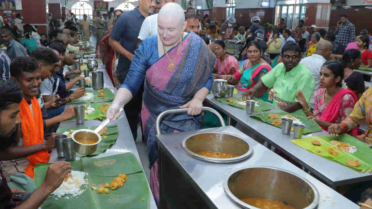 అనంతరం నిత్యాన్నదాన సత్రంలో శ్రీవారి భక్తులకు స్వయంగా అన్నప్రసాదాన్ని వడ్డించారు. అనంతరం భక్తులతో కలసి అన్నప్రసాదం స్వీకరించారు. ఈ కార్యక్రమంలో టీటీడీ అదనపు ఈవో వెంకయ్య చౌదరి పాల్గొన్నారు.