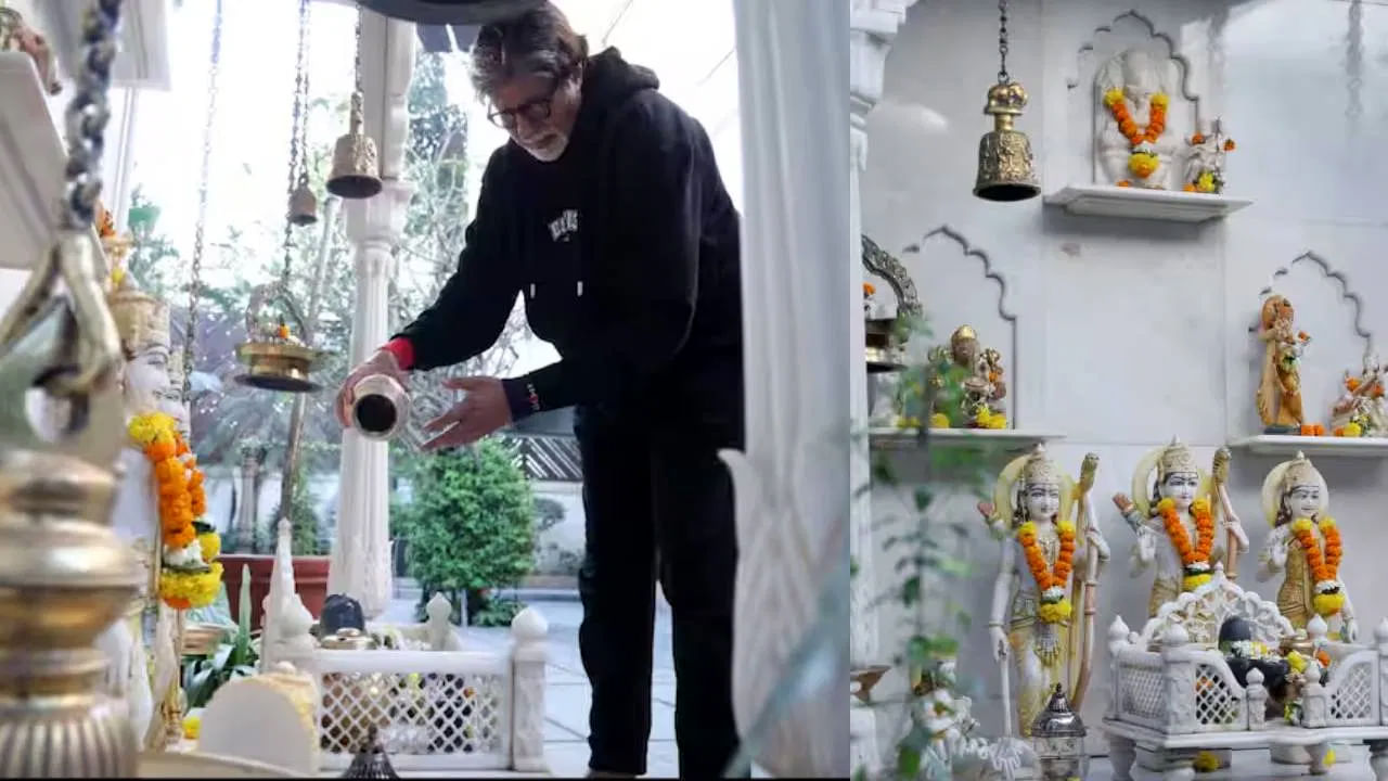 ఆ విగ్రహాలకు అమితాబ్ అభిషేకం చేస్తూ కనిపించారు. అలాగే అమితాబ్ బచ్చన్ తులసికి నీరు పోస్తూ కనిపించారు. అమితాబ్ బచ్చన్ యొక్క ఈ ఫోటోలు సోషల్ మీడియాలో వైరల్ అవుతున్నాయి.