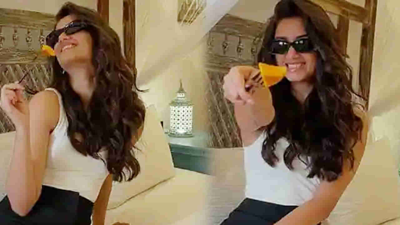 శ్రీలంకలో వెకేషన్ ఎంజాయ్ చేస్తూ.. బెడ్ పై మామిడిపండ్ల ముక్కలను పెట్టుకొని, వాటిని వయ్యారంగా తింటూ ఫొటోలకు ఫోజులిచ్చింది.