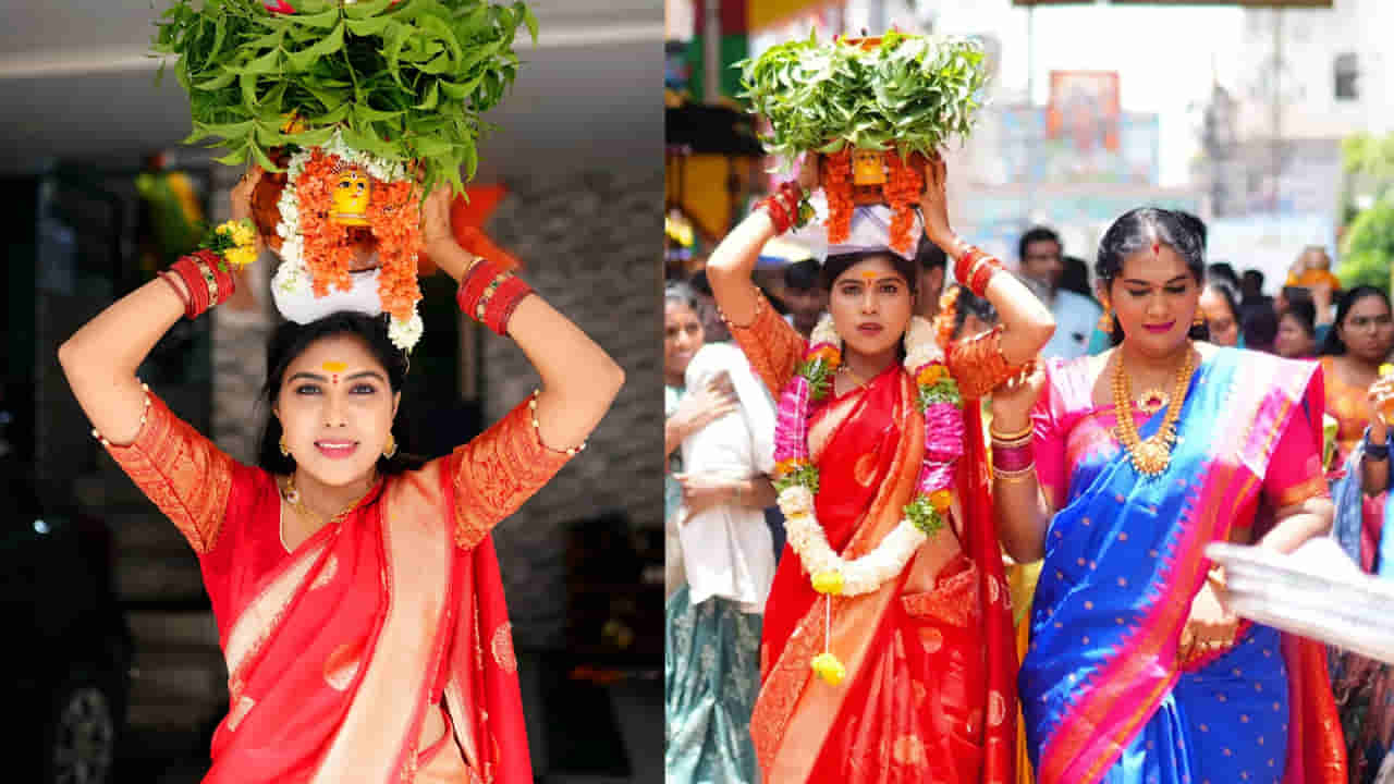 ప్రస్తుతం టీవీషోస్, సినిమాలతో బిజీగా ఉంటోన్న సత్యశ్రీ బోనాల ఉత్సవాల్లో పాల్గొంది. ఇందులో మహంకాళి అమ్మవారికి బోనం సమర్పించింది.