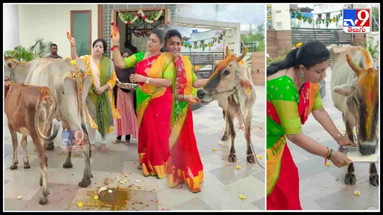 ధన త్రయోదశి మహాలక్ష్మి గోమాత పూజ జరుపుకుంటున్న ఎమ్మెల్యే రోజా ఫొటోస్