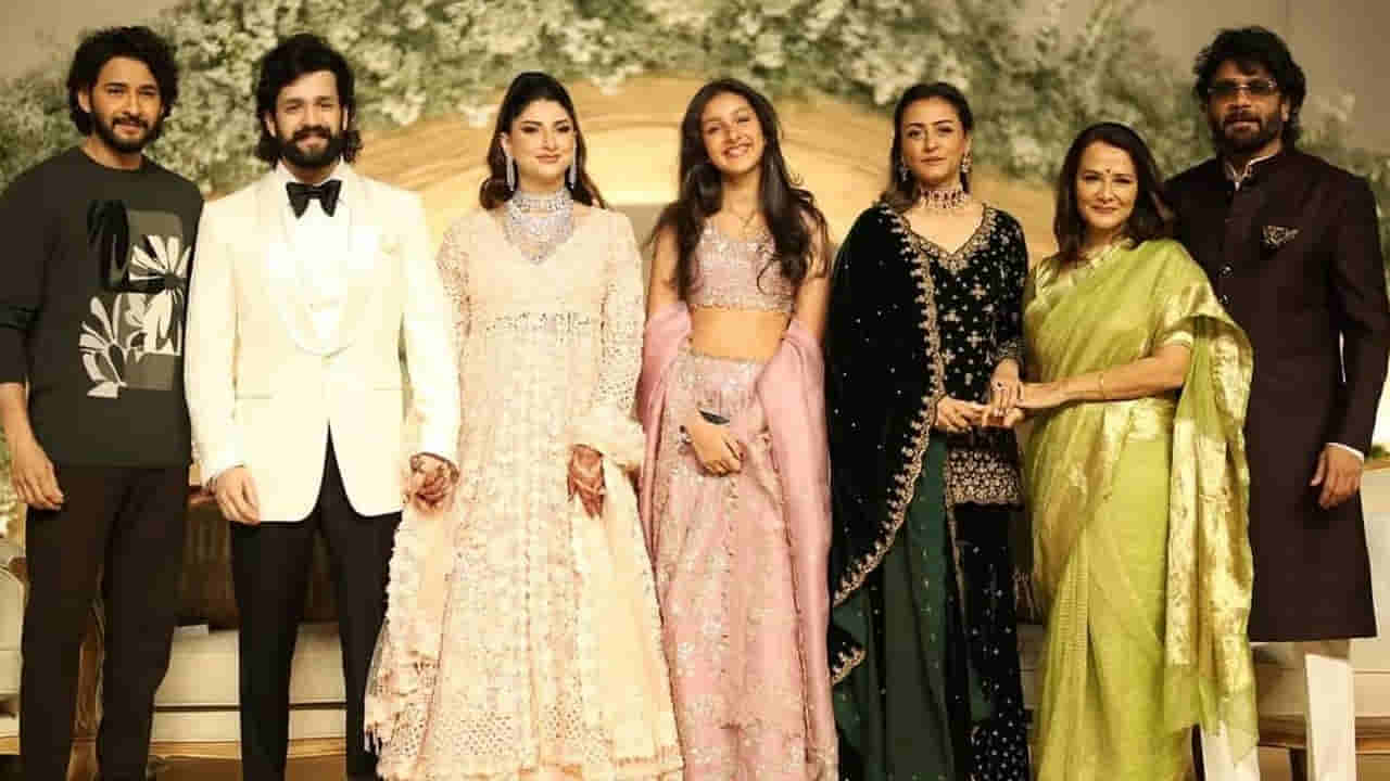 నాగార్జున ఈ రిసెప్షన్ను గ్రాండ్గా నిర్వహించారు. సూపర్ స్టార్ మహేష్ బాబు సతీసమేతంగా ఈ వేడుకకు హాజరయ్యారు. మహేష్ బాబుతో పాటు రామ్ చరణ్, ఉపాసన కూడా ఈ రిసెప్షన్లో మెరిశారు. ఇందుకు సంబంధించిన ఫోటోలు నెట్టింట చక్కర్లు కొడుతున్నాయి.