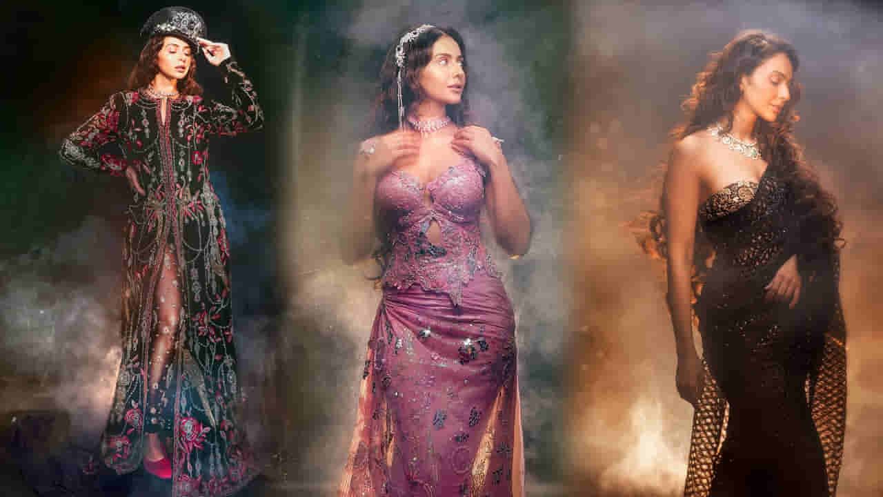 ఇక ఈ ఫొటోల్లో రకుల్, బ్లాక్ సారీ, డిఫరెంట్ డిజైన్స్ తో తయారు చేసిన డ్రెసెస్, క్రౌన్ ధరించి ప్రతి ఒక్కరినీ ఆకట్టుకుంది. దీంతో ఈ ఫొటోస్ నెట్టింట తెగ ట్రెండ్ అవుతున్నాయి.