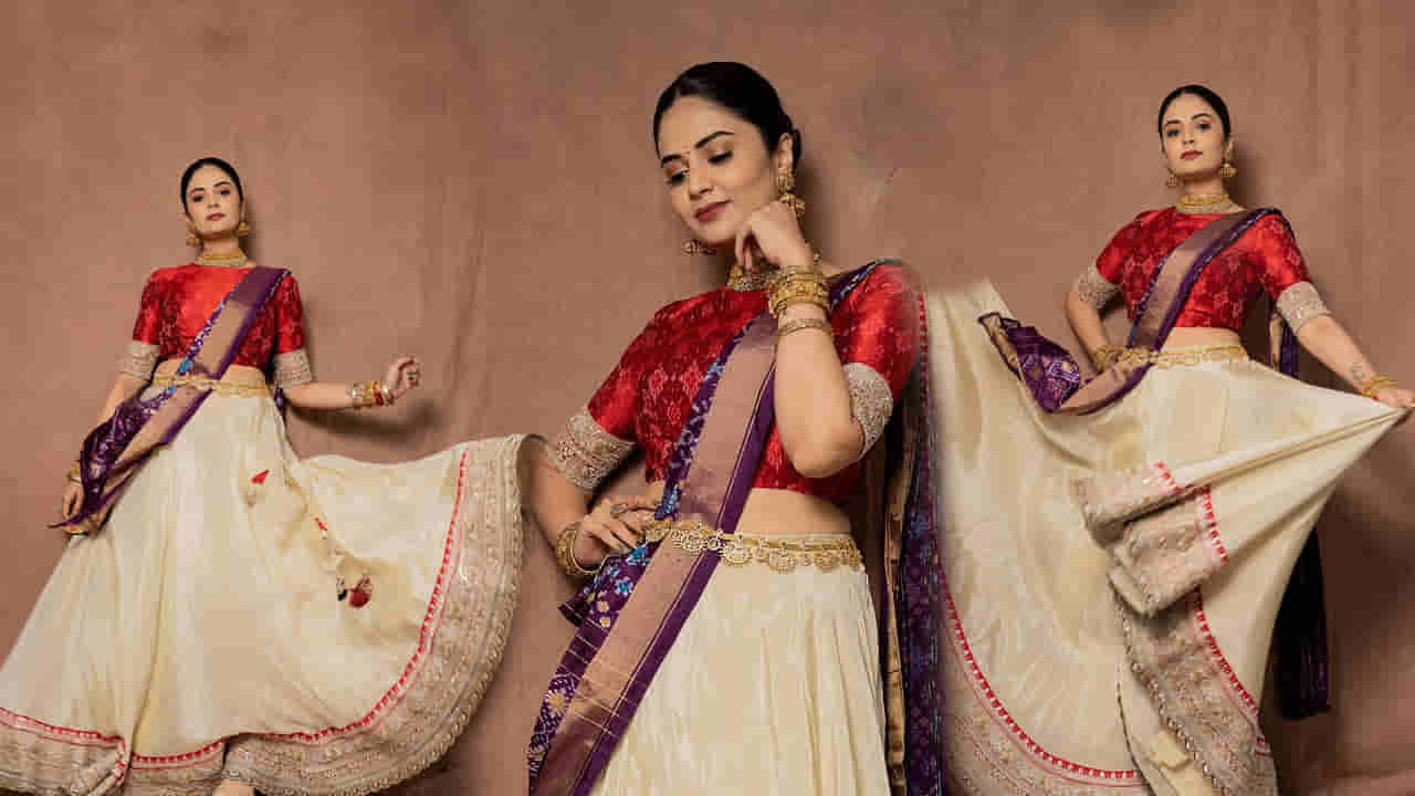 తాజాగా ఈ ముద్దుగుమ్మ ఎరుపు రంగు పరికిణిలో అందంగా రెడీ అయ్యి, తన అంద చందాలతో అందరినీ ఆకట్టుకుంది. ప్రస్తుతం దీనికి సంబంధించిన ఫొటోస్ నెట్టింట తెగ వైరల్ అవుతున్నాయి. దీంతో వీటిని చూసిన ఈ అమ్మడు ఫ్యాన్స్ బ్యూటిఫుల్ శ్రీముఖి అంటూ కామెంట్స్ చేస్తున్నారు.