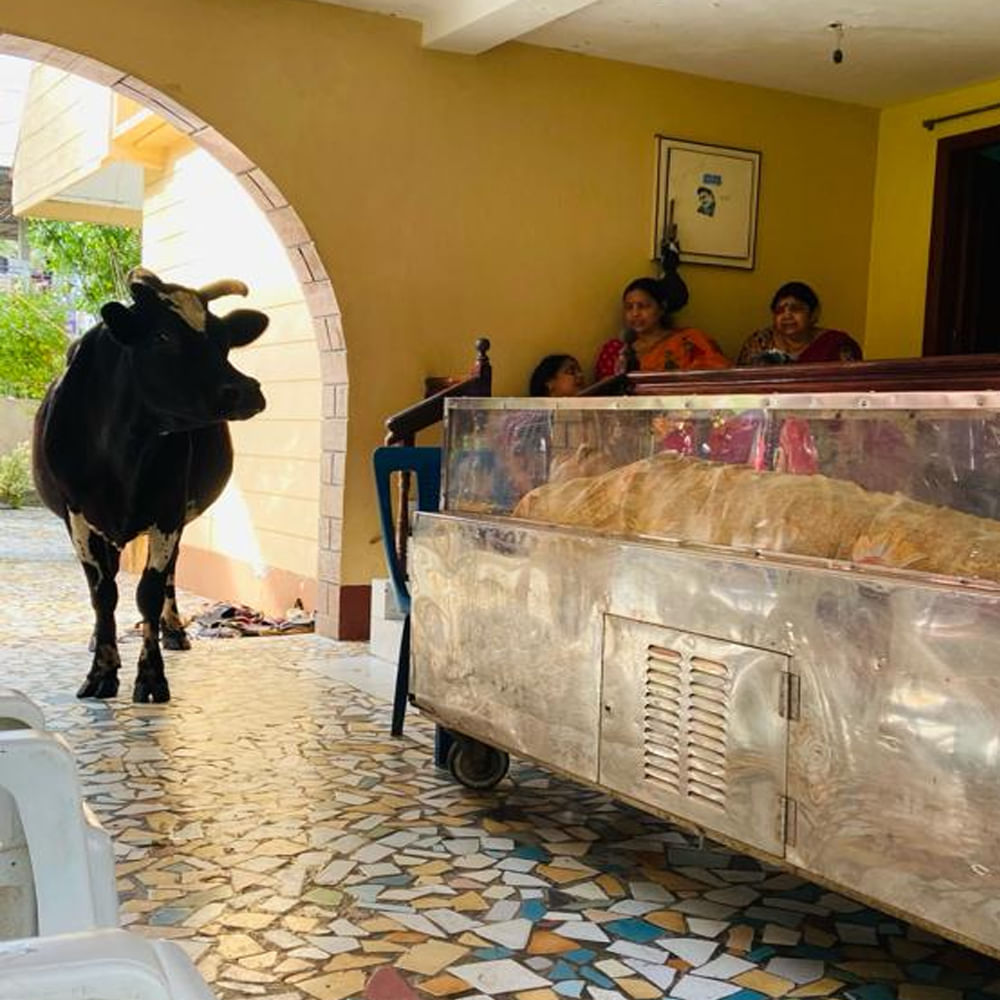 ఆవు పుట్టినప్పటి నుండి యజమాని సత్యనారాయణ మూర్తి కన్న బిడ్డ వలె తన చేతులతో పెంచి ఆలనా పాలన చూడడం వల్లనే రెండు రోజులు నుండి విచారంగా ఉంటుందని కుటుంబ సభ్యులు విచారం వ్యక్తం చేస్తున్నారు.