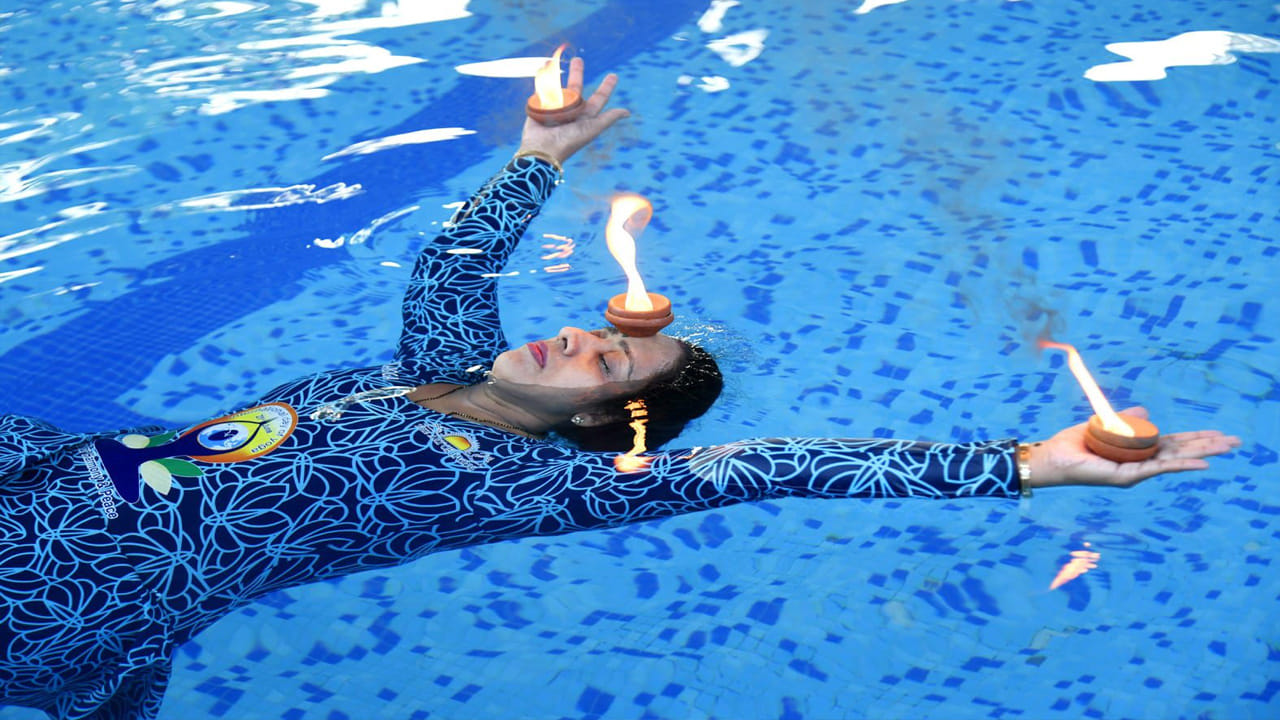 ఓ మహిళ... ఆమె తన కుమార్తెకు ఈత నేర్పించే క్రమంలో ఆమె కూడా ఈతపై మక్కువ పెంచుకున్నారు. సాధన చేశారు.. అందరిలా ఈత నేర్చుకుని వదిలేస్తే ఏముంటుందిలే..! ఏదో ఒక ప్రత్యేకత సాధించాలనుకున్నారు. అందులోనే తన ఆరోగ్యాన్ని కూడా మెరుగుపరుచుకోవాలనుకున్నారు. ఇంతలో భారతీయ సంస్కృతిలో భాగమైన యోగాను ప్రపంచ దేశాలకు మోడీ పరిచయం చేసిన విషయాన్ని గుర్తించారు. అప్పటినుంచి యోగా సాధన చేశారు. ఒకవైపు ఈత నేర్చుకోవడం.. మరోవైపు యోగా చేయడం..!