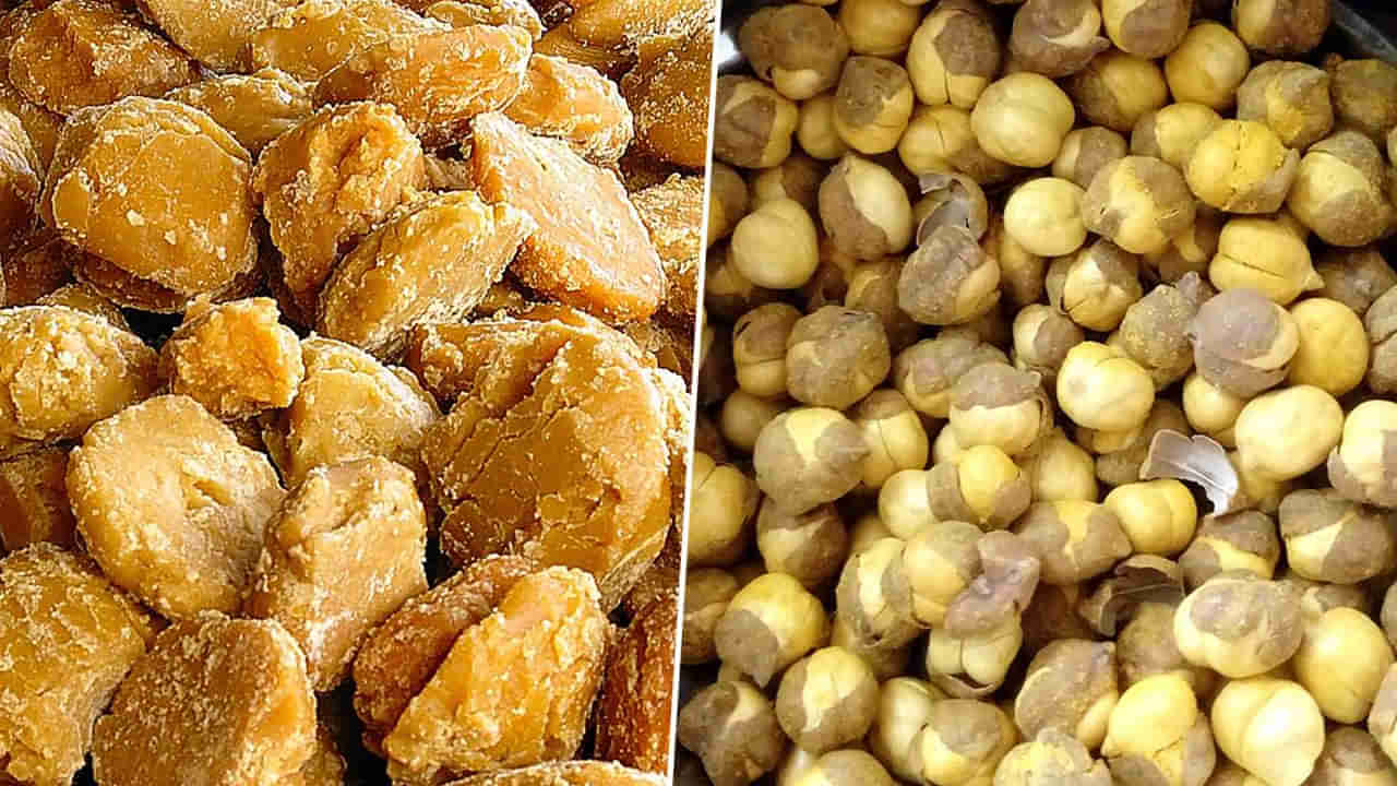 ఎసిడిటిని దూరం చేస్తుంది: ప్రస్తుత కాలంలో చాలామంది ఎసిడిటి సమస్యతో భాదపడుతున్నారు. ఎసిడిటి సమస్యను తగ్గించాలంటే బెల్లం, శనగలు ప్రభావవంతంగా పనిచేస్తాయి. ఇవి మీ జీర్ణశక్తిని బలంగా ఉంచుతాయి. శనగల్లో ఉండే ఫైబర్ జీర్ణక్రియను మెరుగుపరుస్తుంది. ఈ సూపర్ ఫుడ్ డైజెస్టివ్ ఎంజైమ్లను యాక్టివేట్ చేస్తాయి.