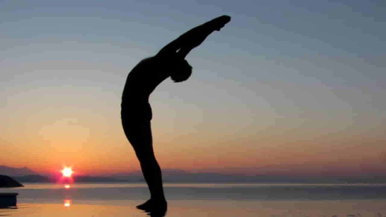 చంద్రవంక భంగిమ: ఊపిరి వదులుతూ మీ కుడి వైపుకు వంగి, ఎడమ వైపు నుంచి బయటి ఎడమ పాదం నుంచి చూపుడు వేళ్ల చిట్కాల వరకు పొడవుగా విస్తరించాలి. మీ దిగువ వీపును రక్షించడానికి మీ దిగువ బొడ్డు లోపలికి, పైకి విస్తరించి ఉంచాలి. అనంతరం ఊపిరి పీల్చుకోంకుని ఎడమ వైపునకు వంగాలి.
