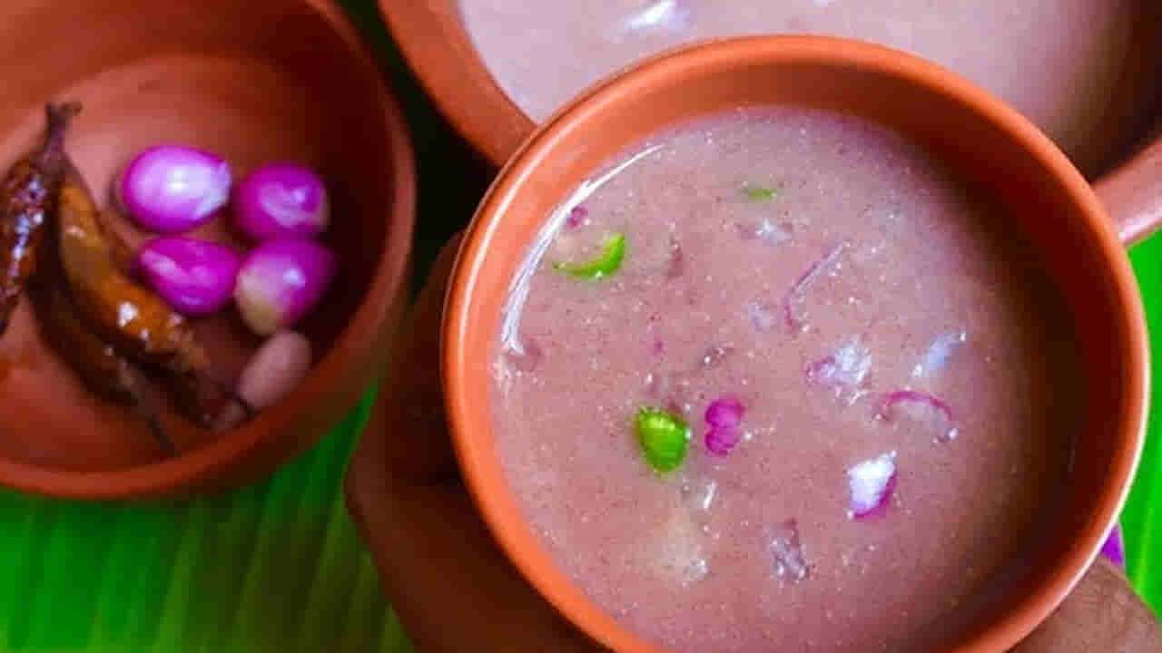 చివర్లో ఉప్పును వేసి బాగా దానిని బాగా కలపండి. గ్యాస్ ఆఫ్ చేసి దానిని కిందకు దించి చల్లారనివ్వండి. బాగా చల్లారిన తర్వాత దానిలో గంజి కలిపి, ఇంకా ఉల్లిపాయ ముక్కలు, కట్ చేసిన పచ్చిమిర్చి, కొత్తిమీరను వేసి కలుపుకోవాలి