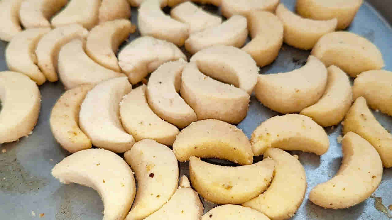 పిండిని ఒక ప్లేట్లో సమానంగా పరుచుకుని, ఒక చిన్న స్టీల్ గ్లాస్ లేదా మూతతో ఇలా హాఫ్ మూన్ షేప్లో కట్ చేసుకోవాలి. ఇది చూస్తుంటే ఒక చిన్నపాటి ఆర్ట్లా అనిపిస్తుంది. పిల్లలతో కలిసి ఇలా బిస్కెట్లు కట్ చేస్తే వారు కూడా ఎంతో సరదాగా ఫీలవుతారు. షేప్స్ పర్ఫెక్ట్గా రావడానికి పిండి మందం కనీసం అర అంగుళం ఉండేలా చూసుకోవాలి. మనం చిన్నప్పుడు బేకరీలో చూసిన ఆ ముద్దు ముద్దు చందమామలు మన ఇంట్లోనే సిద్ధమవుతుంటే ఆ ఆనందమే వేరు.