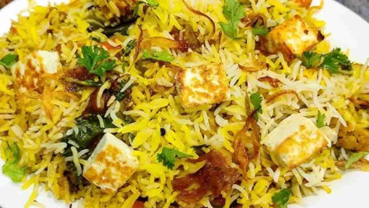 కావాల్సిన పదార్థాలు: ఒక కప్పు బాస్మతి బియ్యం, పావు కిలో పనీర్ ముక్కలు, టమాటాలు, ఉల్లిపాయలు, 6 పచ్చిమిర్చి, ఒక టేబుల్ స్పూన్ అల్లం వెల్లుల్లి పేస్ట్, బిర్యానీ ఆకులు, లవంగాలు, యాలకులు, ఒక టీ స్పూన్ కారం, అర టీ స్పూన్ పసుపు, రుచికి తగినంత ఉప్పు, ఒక టేబుల్ స్పూన్ మసాలా పొడి, అర గ్లాస్ నూనె, ఒక టేబుల్ స్పూన్ నెయ్యి, కొత్తిమీర, పుదీనా ఆకులు, పెరుగు తీసుకోవాలి.