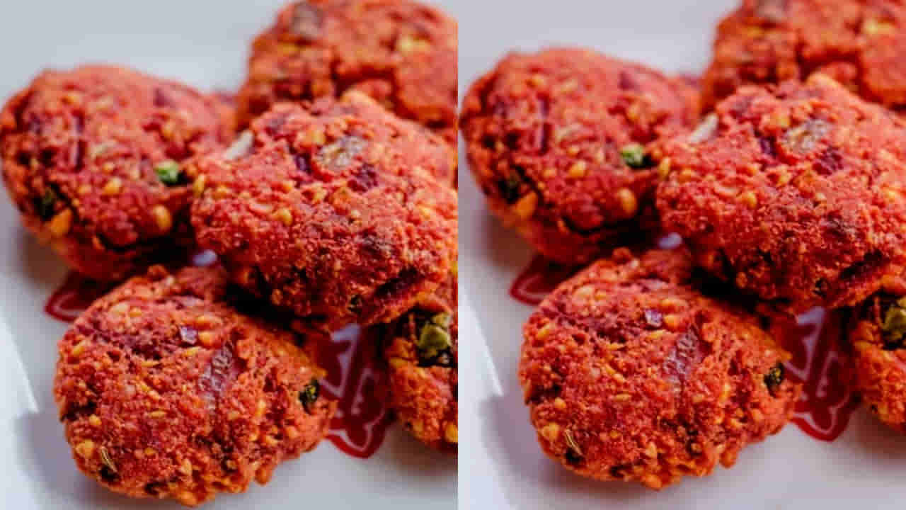 ఇప్పుడు పాన్ పెట్టుకుని ఆయిల్ వేసి అది వేడయ్యాక ముందుగా చేసి పక్కన పెట్టుకున్న గారెలను నూనెలో వేసి గరిటేతో తిప్పుతూ రెండు వైపులా కాలిందో లేదో చూసి రంగు మారే వరకు బాగా వేయించండి. అంతే వేడి వేడి బీట్ రూట్ గారెలు రెడీ.