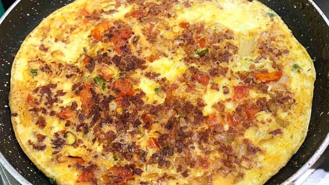 ఇప్పుడు స్టవ్ వెలిగించి పెనం పెట్టి దానిలో ఆయిల్ వేసి వేడయ్యే వరకు ఉంచి గుడ్డు మిశ్రమాన్ని పెనం మీద పోసి ఒక వైపు కాలిన తర్వాత రెండో వైపు కూడా కాలనివ్వాలి. అంతే, వేడి వేడి మటన్ ఆమ్లెట్ రెడీ.