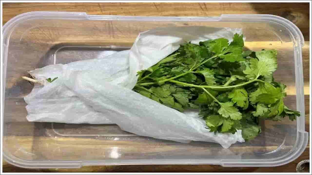 కొత్తిమీరను ఎక్కువ కాలం తాజాగా ఉంచుకోవాలనుకుంటే కొత్తిమీరను తీసుకొని కడగాలి. ఇప్పుడు కొత్తిమీరను ఒక గుడ్డ లేదా టిష్యూపై పరిచి పూర్తిగా ఆరబెట్టండి. ఆకులు చెడిపోవడానికి తేమ అతిపెద్ద కారణం. దీని ప్రకారం.. కొత్తిమీరను పూర్తిగా ఆరబెట్టడం మంచిది. కొత్తిమీరను తాజాగా ఉంచడానికి ఇది ఒక గొప్ప మార్గం.