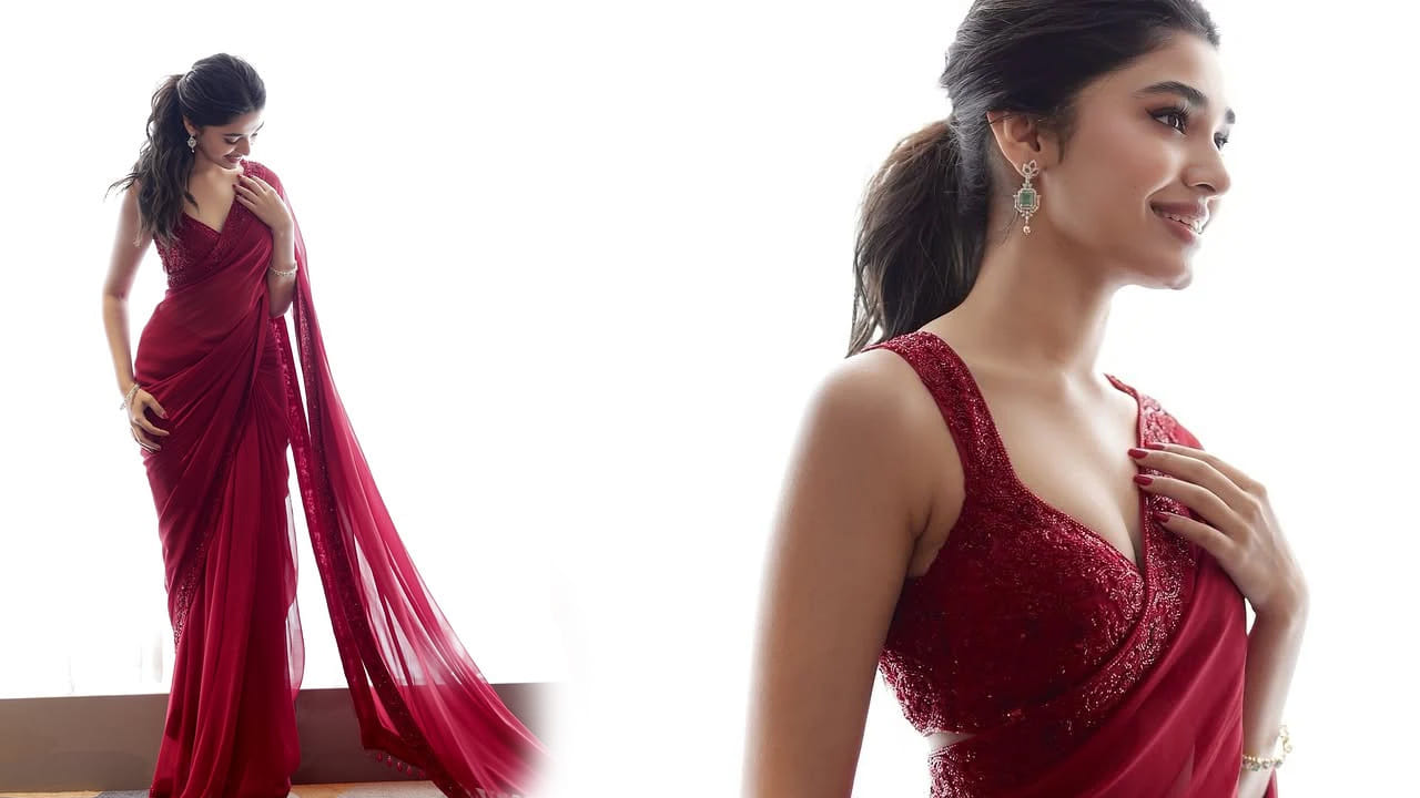 అందాల ముద్దుగుమ్మ కృతి శెట్టి గురించి ఎంత చెప్పినా తక్కువే. అందం, అభినయం ఈ ముద్దుగుమ్మ సొంతం. తాజాగా ఈ బ్యూటీ రెడ్ కలర్ చీరలో తన గ్లామర్తో చంపేస్తుంది. క్యూట్ క్యూట్ ఎక్స్ ప్రెషన్స్తో ఉన్న అందమైన ఫొటోస్ ఈ బ్యూటీ తన ఇన్ స్టాలో షేర్ చేసింది. దీంతో ఇవి నెట్టింట తెగ వైరల్ అవుతున్నాయి.