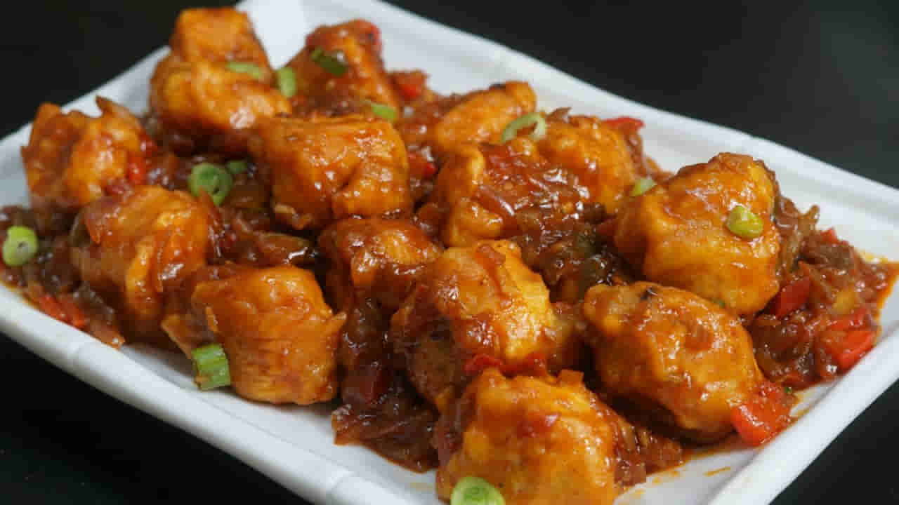 మళ్ళీ స్టౌ పై ఒక పాన్ పెట్టుకుని వేడి ఎక్కిన తర్వాత కొంచెం నూనె వేసి వేడి ఎక్కిన తర్వాత పచ్చిమిర్చి, ఉల్లిపాయ ముక్కలు, అల్లం ముక్కలు, వెల్లుల్లి ముక్కలు వేసి వేయించుకోవాలి. తర్వాత ఈ మిశ్రమంలో చైనీస్ చిల్లి పేస్ట్ , చక్కర, టమాటా కెచప్, మిర్యాల పొడి, అజ్నో మోటో, వైట్ పెప్పర్ పౌడర్, ఉప్పు, వెనిగర్ వేసుకుని బాగా మిక్స్ చేసుకోవాలి.
