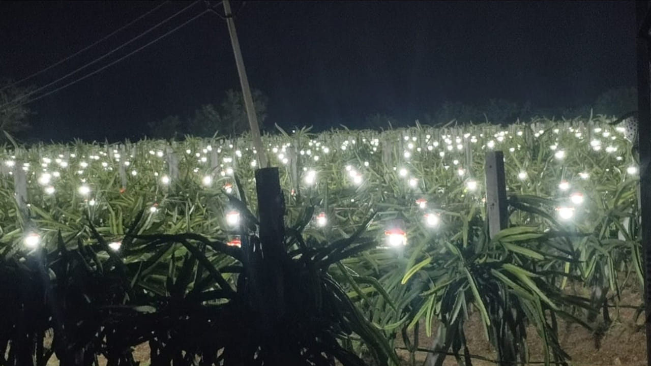 Nellore Farmer: డ్రాగన్ ఫ్రూట్ పంట పండించడంలో నెల్లూరు రైతు సరికొత్త పద్ధతులను అనుసరిస్తున్నారు. తన పొలంలోని నాలుగు ఎకరాలలో విద్యుత్ దీపాలను అమర్చాడు. మంచు మొక్కపై పడకుండా ఉండేటట్లు ఏర్పాటు చేశాడు. దీంతో అనుకున్నట్లుగానే మొక్క పెరగడమే కాకుండా పిందె దశలో కాపు ఆశాజనకంగా ఉందని రైతు పిచ్చిరెడ్డి తెలిపాడు. అనుకున్నట్లుగా మంచి కాపు వస్తే 16 ఎకరాలలోని కాపుకు విద్యుత్ ఉద్యోపాలు అమర్చి అన్ సీజన్లో కూడా మంచి రాబడి తీసుకునేందుకు ప్రయత్నిస్తానని అంటున్నారు పిచ్చి రెడ్డి.