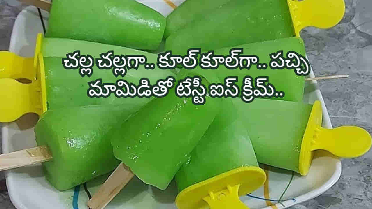 కావాల్సిన పదార్థాలు : పచ్చి మామిడికాయలు రెండు ,పంచదార రుచికి సరిపడ, నీళ్లు తగినన్ని,ఫుడ్ కలర్ గ్రీన్, కారం పొడి చిటికెడు, బ్లాక్ సాల్ట్ చిటికెడు. ఇంటిలో దొరికే వీటితో చాలా సులభంగా వేసవి తాపాన్ని తరిమికొట్టే టేస్టీ టేస్టీ పుల్ల ఐస్ క్రీమ్ తయారు చేయవచ్చును.