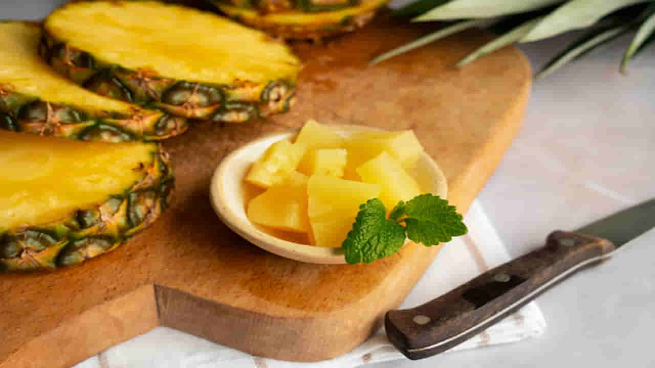 పైనాపిల్ ఒక పోషకాలున్న పండు. ఇందులో విటమిన్ సి, మాంగనీస్, ఫైబర్, పొటాషియం, విటమిన్ బి6, రాగి లాంటివి పుష్కలంగా ఉంటాయి. ఇది రోగనిరోధక శక్తిని పెంచుతుంది. జీర్ణక్రియకు సహాయపడుతుంది. చర్మం, కంటి ఆరోగ్యానికి మేలు చేస్తుంది. వాపును తగ్గిస్తుంది. గుండె ఆరోగ్యానికి తోడ్పడుతుంది. కానీ, పైనాపిల్లో విటమిన్ సి అధికంగా ఉంటుంది. దీంతో గుండెల్లో మంట, వాంతులు, కడుపు నొప్పి వంటి సమస్యలను కలిగిస్తుంది. కాబట్టి, పైనాపిల్ను తక్కువ పరిమాణంలో మాత్రమే తినాలి.