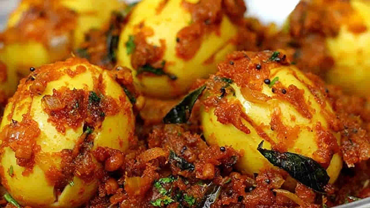 ఇప్పుడు పాన్ తీసుకుని దానిలో నూనె వేసి అది వేడయ్యాక పోపు గింజలు, కరివేపాకు వేసి వేయించాలి. ఆ తర్వాత ముందుగా ఉడికించిన గుడ్లను పాన్లో వేసి బాగా వేయించాలి.