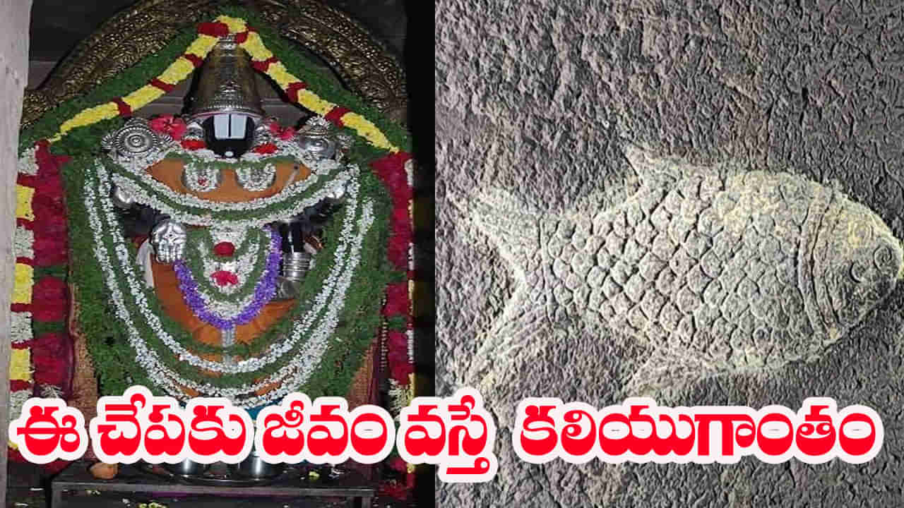ఆలయంలోని అంతర్భాగంపై ఒక గోడపై చేప ఆకారంలో ఒక శిల్పం ఉంటుంది. స్థానిక పండితులు ఈ చేప గురించి.. ఆలయం గురించి చెబుతూ.. భవిష్యత్ లో భారీ వరదలు వస్తాయని.. అప్పుడు వరద నీరు ఈ ఆలయంలోకి చేరుకుంటుందని చెప్పారు. ఆ వరద నీరు ఈ చేపని తాకిన వెంటనే ఈ చేపకు ప్రాణం వస్తుందని... అప్పుడు నీటిలో ఈదుతుందని అప్పుడు కలియుగాంతం అవుతుందని పురాణాలు చెబుతున్నాయని చెప్పారు.( ఈ వార్తలలో ఇవ్వబడిన సమాచారం మత విశ్వాసాలపై ఆధారపడి ఉంది. పాఠకుల ఆసక్తి మేరకు.. పలువురు పండితుల సూచనలు, వారి తెలిపిన అంశాల ఆధారంగాఅందించినవి మాత్రమే.. వీటిలో ఎలాంటి శాస్త్రీయ ఆధారాలు లేవని పాఠకులు గమనించాలి. టీవీ9 తెలుగు దీనిని ధృవీకరించలేదు)