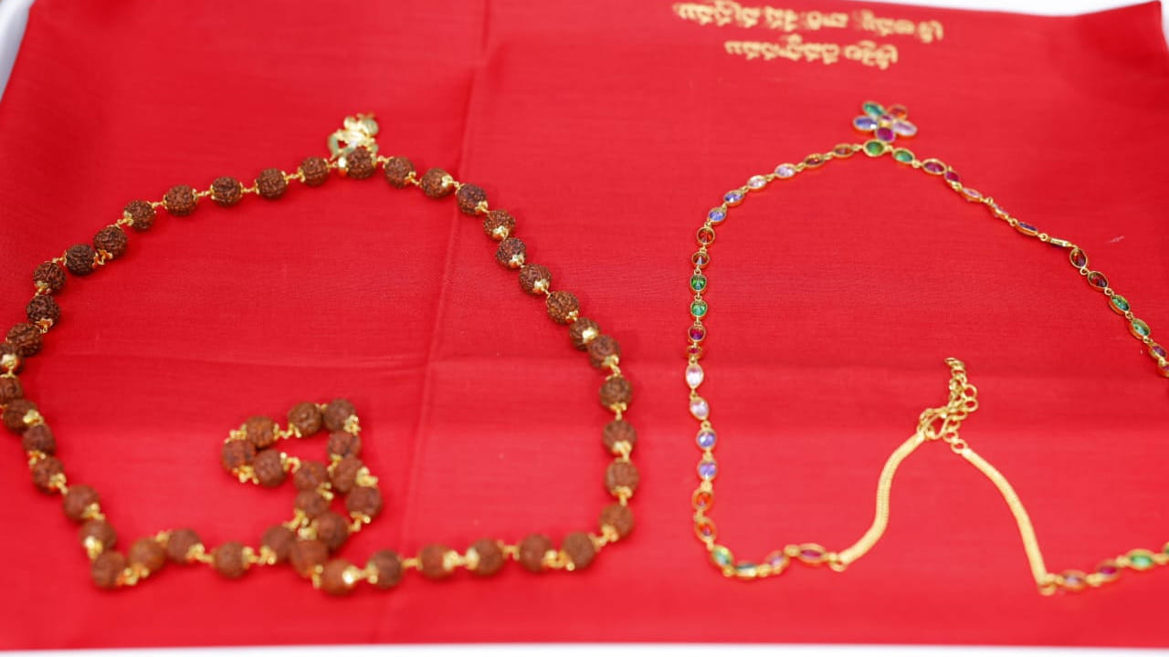 శ్రీశైలం మల్లన్న ఆలయానికి బంగారు రుద్రాక్ష మాల, హారం విరాళం