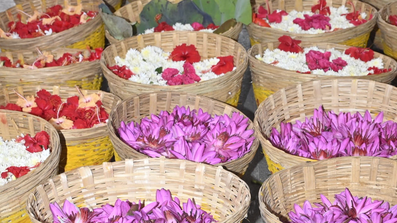 విజయవాడ ఇంద్రకీలాద్రి శ్రీ కనకదుర్గ మల్లేశ్వర స్వామి వార్ల దేవస్థానంలో వసంతోత్సవాలు వైభవంగా జరుగుతున్నాయి. నాలుగో రోజు అమ్మవారికి మందార, ఎర్ర కలువలు, చామంతి పూలతో అత్యంత శోభాయమానంగా పుష్పార్చన నిర్వహించారు. ఆలయ కార్యనిర్వహణాధికారి స్వయంగా పూజలు చేయగా, వైదిక కమిటీ సభ్యులు శాస్త్రోక్తంగా నిర్వహించారు. ప్రతిరోజూ విభిన్న పుష్పాలతో అలంకరణలు భక్తులకు ఆధ్యాత్మిక ఆనందాన్ని ఇస్తున్నాయి, ఆలయానికి భక్తుల రద్దీ పెరుగుతోంది.