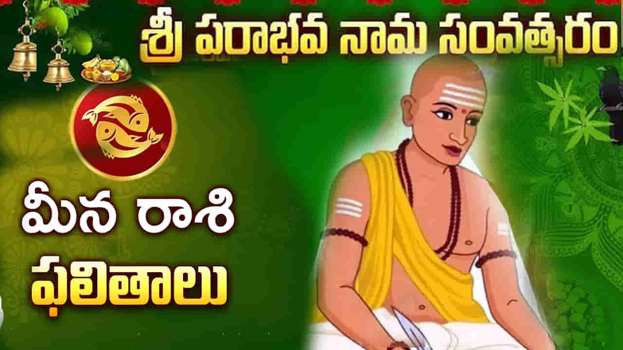 స్వస్తి శ్రీ పరాభవ నామ సంవత్సరంలో మీన రాశి వారికి మిశ్రమ ఫలితాలను ఇస్తుంది. వీరికి ఏలినాటి శని ప్రారంభ దశ కాబట్టి కొన్ని విషయాల్లో చాలా జాగ్రత్తగా ఉండాలంట. ఇక మీన రాశి పూర్వభాద్ర 4 పాదాలు, ఉత్తరాభాద్ర, రేవతి. ఈ రాశి వారి అధిపతి గురువు, అదృష్ట రంగు పసుపు, క్రీమ్, తెలుపు, అదృష్ట సంఖ్యలు 3,7,9. ఈ రాశి వారి ఆదాయం 14, వ్యయం 11.