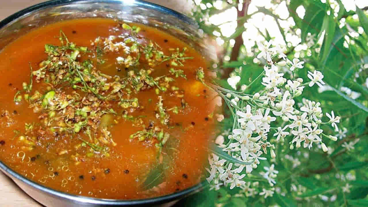తర్వాత మళ్లీ స్టవ్ ఆన్ చేసి , కొంచెం నూనె పోసి, జీలకర్ర, వెల్లుల్లిపాయలు, కరివేపాకు వేసి, ఇవి వేగిన తర్వాత, రసంలో వేయాలి. ఆ తర్వాత కొంచెం కొత్తి మీర వేసి, 5 నిమిషాలపాటు రసం మరిగేలా చూడాలి . అంతే వేడి వేడి వేప పువ్వు రసం రెడీ. దీనిని తినడం వలన వైరల్ ఇన్ఫెక్షన్స్ తగ్గడమే కాకుండా, రోగనిరోధక శక్తి పెరుగుతుంది.