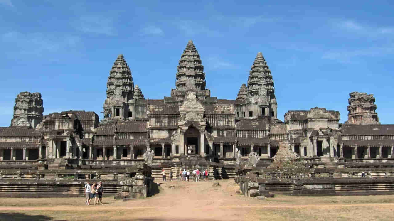 కంబోడియాలోని అంగోర్ వాట్: ఇది 900 AD నుంచి 1400 AD వరకు నిర్మించబడిన హిందూ-బౌద్ధ దేవాలయ సముదాయం. 162.6 హెక్టార్ల (1.6 కిమీ; 401.8 ఎకరాలు) విస్తీర్ణంలో ఉన్న ఈ ఆలయం మొదట 1150 CEలో విష్ణువుకు అంకితం చేయబడిన హిందూ ఆలయంగా నిర్మించబడింది. తరువాత శతాబ్దం చివరి నాటికి ఇది క్రమంగా బౌద్ధ దేవాలయంగా రూపాంతరం చెందింది. 12వ శతాబ్దంలో పురాతన ఖైమర్ను పాలించిన హిందూ రాజు సూర్యవర్మన్ II నిర్మించిన ఈ ఆలయం ఆర్కిటెక్చర్ అద్భుతం. ఈ సముదాయం చాలా పెద్దది, దీన్ని పూర్తిగా చూడడానికి రెండు రోజులు అవసరం.