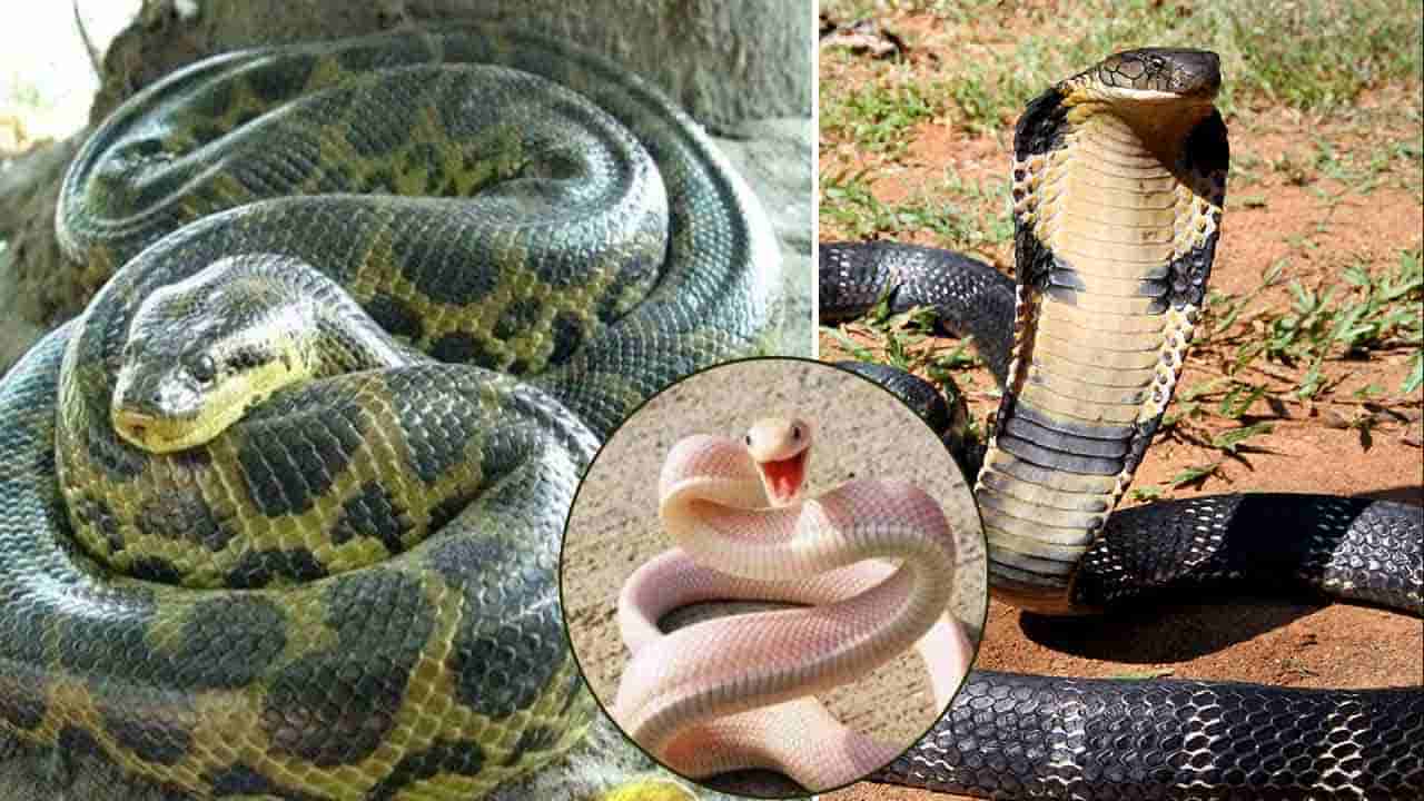 కింగ్ కోబ్రా: ఈ కింగ్ కోబ్రా పాము 13 అడుగులు ఉంటుంది. దీని బరువు దాదాపు 20 పౌండ్లు. అంటే దాదాపు 9 కిలోల వరకు ఉంటుంది. కింగ్ కోబ్రా ప్రపంచంలోని అతి పెద్ద పాములలో ఇది ఒకటి. అంతేకాదు భూమిపై అతి పొడవైన పాము కూడా. ఈ విషపూరిత పాముకు అనేక ప్రత్యేకతలున్నాయి. కింగ్ కోబ్రా ఎక్కువ భారతదేశం, ఆగ్నేయాసియా, దట్టమైన అడవుల్లో కనిస్తుంది. ఈ పాముకు ఏదైనా ప్రమాదం జరుగుతుందంటే ముందుగానే అప్రమత్తం అవుతుంటుంది. అందుకు ఎదుర్కొనేందుకు సిద్ధంగా ఉంటుంది. అంతేకాకుండా తన సామర్థ్యాన్ని కూడా పెంచుకుంటుంది. పైకి లేచి నిలబడి పోరాడేందుకు సిద్దమవుతుంటుంది.