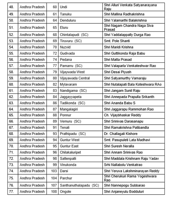 ఏపీ అసెంబ్లీ బీజేపీ అభ్యర్థుల తొలి జాబితా విడుదల