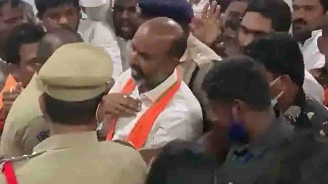 బండి సంజయ్ని బలవంతంగా అదుపులోకి తీసుకున్న పోలీసులు.. కోవిడ్ ప్రోటోకాల్స్ కేసులో అరెస్ట్ చేశారు. వెంటనే మానుకొండూరు స్టేషన్కు తరలించారు. అక్కడే దీక్షకు దిగారు బండి సంజయ్. ప్రభుత్వం 317 జీవోపై దిగిరావాలని అన్నారాయన.