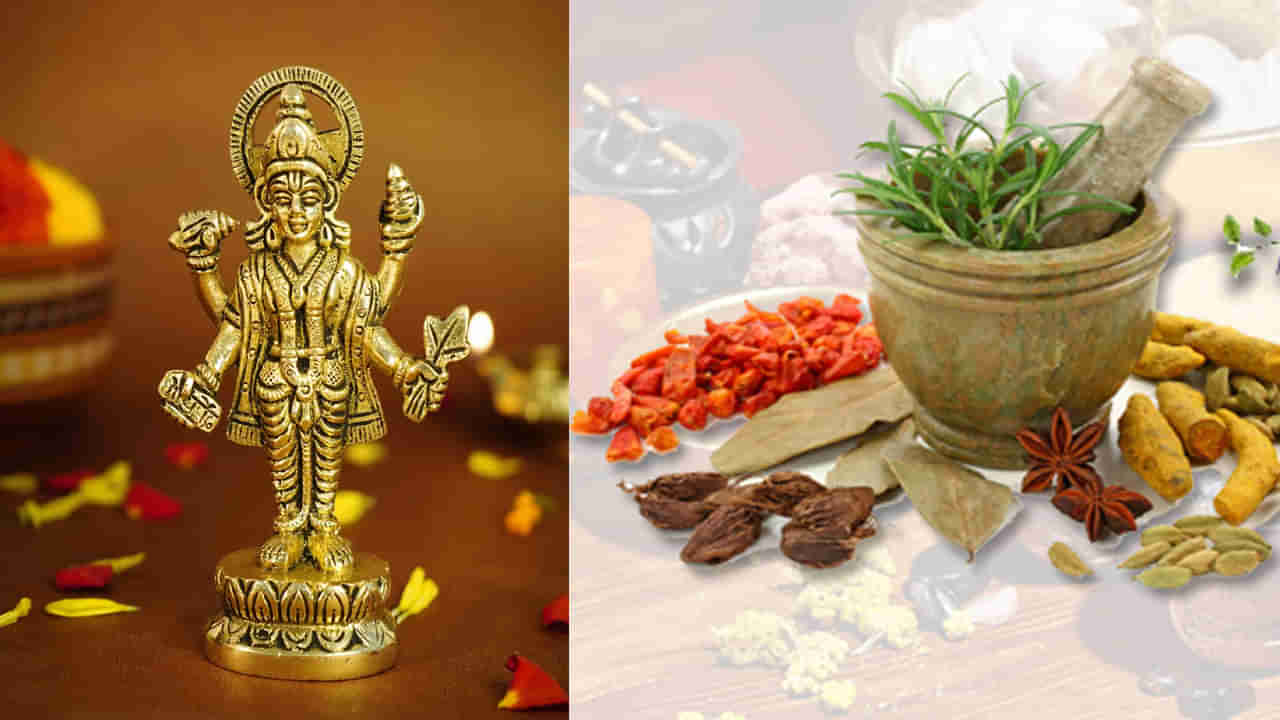 ధన్వంతరికి పంచామృతం, పాలు, పెరుగు, నెయ్యి, తేనె , చక్కెరతో పాటు తులసి, వేప ఆకులు, గిలోయ్ లేదా అశ్వగంధ వంటి ఆయుర్వేద మూలికల మిశ్రమాన్ని అందించడం ద్వారా ధన్తేరస్ పూజను ప్రారంభించండి. నైవేద్యాన్ని సమర్పించేటప్పుడు.. “ఓం నమో భగవతే వాసుదేవాయ ధన్వంతరాయే అమృత-కలశ హస్తాయ సర్వ-అమాయ వినాశాయ త్రైలోక్య నాథాయ ధన్వంతి మహా-విష్ణవే నమః” అని జపించండి. ఈ విధంగా చేయడం వలన సానుకూల గ్రహ శక్తులను, ముఖ్యంగా బృహస్పతితో అనుసంధానించబడిన శక్తులను పెంచుతుంది. ఇంటికి ఆరోగ్యం, తేజస్సు, శ్రేయస్సును ఆహ్వానిస్తుంది.