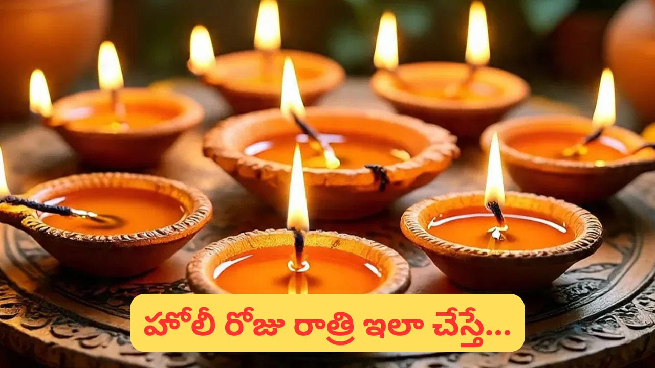 Holi Night Celebration: హోలీ రాత్రిని సనాతన ధర్మంలో నాలుగు మహారాత్రులలో ఒకటిగా పరిగణిస్తారు. ఈ నాలుగు మహారాత్రులలో దీపావళి, జన్మాష్టమి, మహాశివరాత్రి, హోలీ ఉన్నాయి. ఈ పండుగలన్నిటిలోనూ రాత్రి సమయంలో ధ్యానం, జపం, పూజ, దీపాలు వెలిగించడం ప్రాముఖ్యతను మత గ్రంథాలు మనకు తెలియజేస్తాయి. హోలీ పండుగ రాత్రి దీపాలను వెలిగించడం అనేది చాలా శుభప్రదమైన చర్య. కొన్ని ప్రత్యేక ప్రదేశాల్లో దీపాలు వెలిగించడం ద్వారా మీరు శుభం, సానుకూల శక్తిని పొందవచ్చు.
