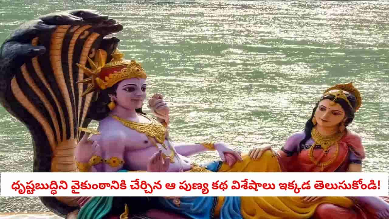 పౌరాణిక గాథ ప్రకారం, భద్రావతి నగరాన్ని ద్యుతిమాన్ అనే రాజు పరిపాలించేవాడు. అదే నగరంలో ధనపాల్ అనే దైవభక్తి గల వైశ్యుడు నివసించేవాడు. అతనికి ఐదుగురు కుమారులు ఉండగా, చిన్నవాడైన ధృష్టబుద్ధి చెడు సావాసాలకు అలవాటు పడి మాంసం, మద్యం జూదం వంటి పాపపు పనుల్లో మునిగిపోయాడు. తండ్రి ఆస్తిని దుర్వినియోగం చేస్తూ, పెద్దలను అగౌరవపరిచేవాడు. విసిగిపోయిన ధనపాల్ తన కుమారుడిని ఇంటి నుండి వెళ్లగొట్టాడు. తిండి కోసం దొంగతనాలు చేస్తూ చివరకు పట్టుబడి, రాజ్యం నుండి కూడా బహిష్కరణకు గురవుతాడు. అడవుల్లో ఆకలి దప్పికలతో అలమటిస్తూ చివరకు కౌడిన్య మహర్షి ఆశ్రమానికి చేరుకున్నాడు.