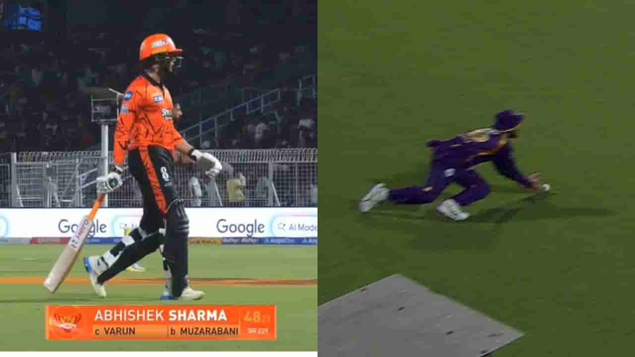 సన్రైజర్స్ ఇన్నింగ్స్ తొమ్మిదో ఓవర్లో ఈ సంఘటన చోటుచేసుకుంది. బ్లెస్సింగ్ ముజారబానీ వేసిన షార్ట్ పిచ్ బంతిని అభిషేక్ శర్మ భారీ షాట్ ఆడాడు. డీప్ స్క్వేర్ లెగ్ దిశగా వెళ్తున్న ఆ బంతిని వరుణ్ చక్రవర్తి ముందుకు డైవ్ చేస్తూ అద్భుతంగా అందుకున్నాడు. అయితే బంతి నేలకు తగిలినట్లు అనుమానం రావడంతో ఫీల్డ్ అంపైర్లు నిర్ణయాన్ని థర్డ్ అంపైర్కు నివేదించారు. రీప్లేలో బంతి నేలను తాకి పైకి లేచినట్లు కనిపిస్తున్నప్పటికీ, అంపైర్ మాత్రం అది క్లీన్ క్యాచ్ అని భావించి అవుట్గా ప్రకటించాడు.