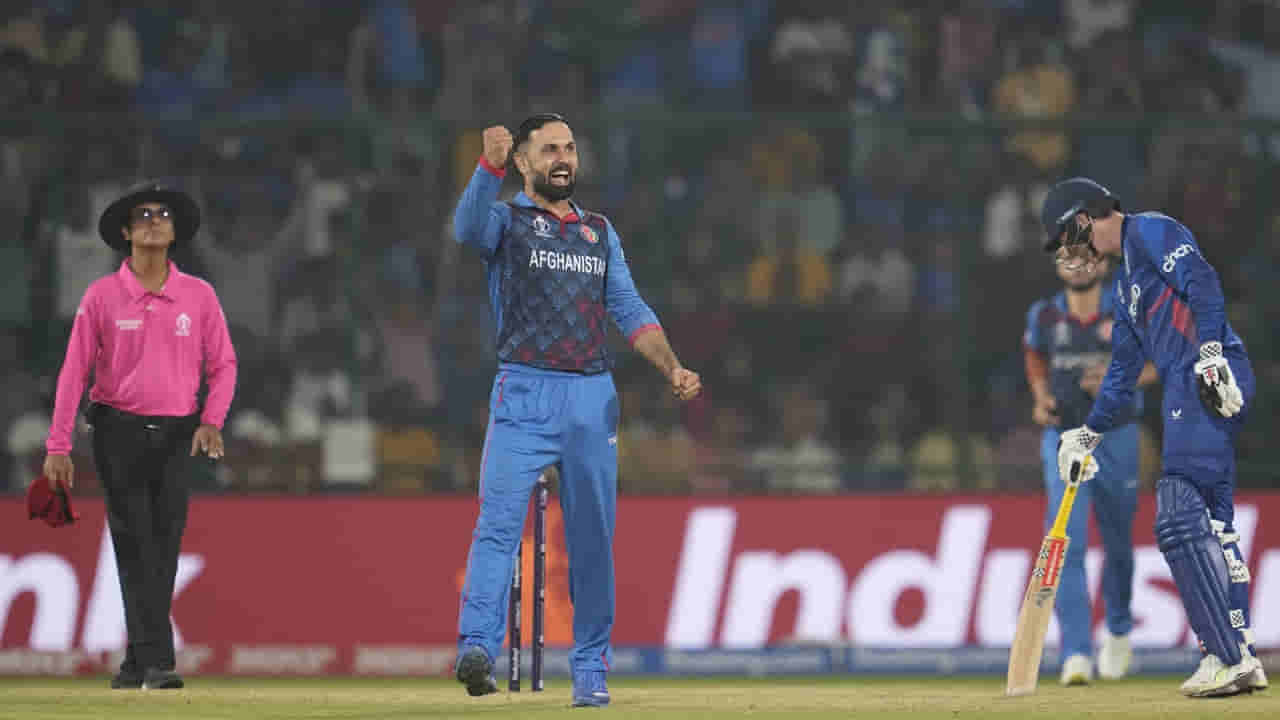 Mohammad Nabi: ఐసీసీ క్రికెట్ ప్రపంచ కప్ 2023 (World Cup 2023) 13వ మ్యాచ్ (ENG vs AFG)లో డిఫెండింగ్ ఛాంపియన్ ఇంగ్లాండ్ను ఓడించి ఆఫ్ఘనిస్తాన్ చరిత్ర సృష్టించింది. చిరస్మరణీయ విజయాన్ని నమోదు చేసింది. వన్డే ప్రపంచకప్ చరిత్రలో ఆఫ్ఘనిస్థాన్కు ఇది రెండో విజయం. ఇంగ్లండ్పై, ఆఫ్ఘనిస్తాన్ బ్యాట్, బాల్ రెండింటిలోనూ అద్భుతమైన ప్రదర్శనతో 2019 ప్రపంచ ఛాంపియన్లను ఆశ్చర్యపరిచింది. ఆఫ్ఘనిస్తాన్ మాజీ కెప్టెన్, వెటరన్ ఆల్ రౌండర్ మహ్మద్ నబీ (Mohammad Nabi) కూడా ఈ మ్యాచ్లో ముఖ్యమైన సహకారం అందించాడు. అతను బౌలింగ్లో కూడా పెద్ద విజయాన్ని సాధించాడు.