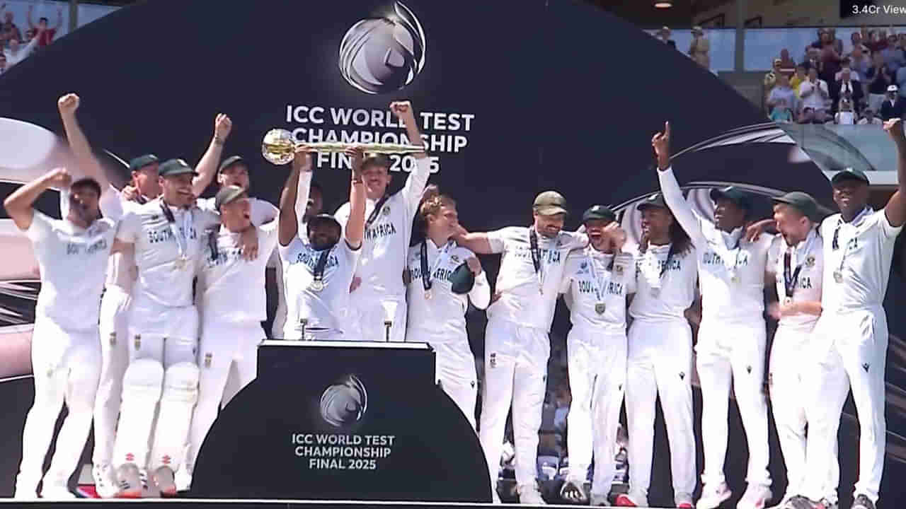 సౌత్ ఆఫ్రికా WTC ఫైనల్లో అద్భుతమైన ప్రదర్శన కనబరిచింది. ముఖ్యంగా ఏడెన్ మార్క్రామ్ శతకం, కెప్టెన్ టెంబా బావుమా నాయకత్వ పటిమ, కగిసో రబడ బౌలింగ్ అసాధారణంగా ఉన్నాయి. లార్డ్స్ వేదికగా జరిగిన ఈ ఫైనల్లో ఆస్ట్రేలియాను 5 వికెట్ల తేడాతో ఓడించి, ప్రొటిస్ తమ సత్తా చాటారు. ఈ విజయం వారికి ప్రపంచ టెస్ట్ ఛాంపియన్షిప్ టైటిల్ను తెచ్చిపెట్టింది తప్ప, అది టెస్ట్ ర్యాంకింగ్స్లో నేరుగా నెం.1 స్థానాన్ని ఇవ్వలేదు.