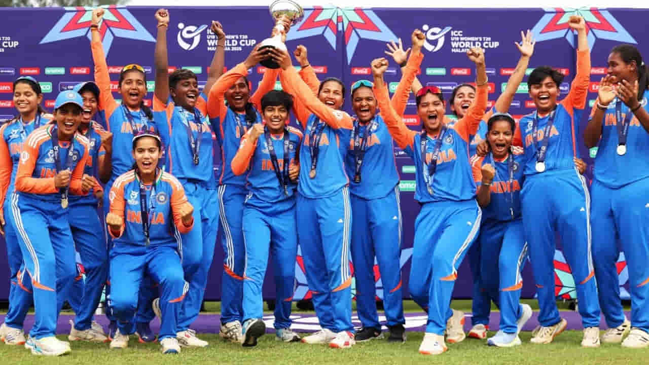 ప్రతిష్ఠాత్మక ఐసీసీ అండర్-19 మహిళల టీ20 ప్రపంచకప్ ను భారత జట్టు రెండోసారి గెల్చుకుంది. కౌలాలంపూర్లోని బయుమాస్ ఓవల్ మైదానంలో జరిగిన అండర్-19 మహిళల టీ20 ప్రపంచకప్ ఫైనల్ మ్యాచ్లో దక్షిణాఫ్రికాపై భారత్ విజయం సాధించి 2వ సారి ప్రపంచ కిరీటాన్ని కైవసం చేసుకుంది. దీంతో భారత అమ్మాయిలపై సర్వత్రా ప్రశంసలు వెల్లువెత్తుతున్నాయి. తాజాగా భారత క్రికెట్ కంట్రోల్ బోర్డు కూడా భారత మహిళల క్రికెట్ జట్టుకు రూ. 5 కోట్ల భారీ నజరానా ప్రకటించింది. ఈ నగదు బహుమతిని క్రీడాకారులు, సిబ్బంది పంచుకోనున్నారు. ఇక ప్రపంచకప్ ఫైనల్ లో తొలుత బ్యాటింగ్ చేసిన దక్షిణాఫ్రికా అండర్-19 మహిళల జట్టు 20 ఓవర్లలో 82 పరుగులు చేసి ఆలౌటైంది. టీమ్ ఇండియా తరఫున గొంగడి త్రిష 3 వికెట్లతో మెరిసింది. అలాగే పరుణికా సిసోడియా, ఆయుషి శుక్లా, వైష్ణవి శర్మ తలా 2 వికెట్లు తీశారు. 83 పరుగుల సులువైన లక్ష్యాన్ని ఛేదించేందుకు బరిలోకి దిగిన టీమిండియాలో గొంగడి త్రిష 33 బంతుల్లో అజేయంగా 44 పరుగులు చేయగా, సానికా చాల్కే అజేయంగా 26 పరుగులు చేసింది. దీంతో భారత జట్టు 11.2 ఓవర్లలో 84 పరుగులు చేసి 9 వికెట్ల తేడాతో విజయం సాధించింది.