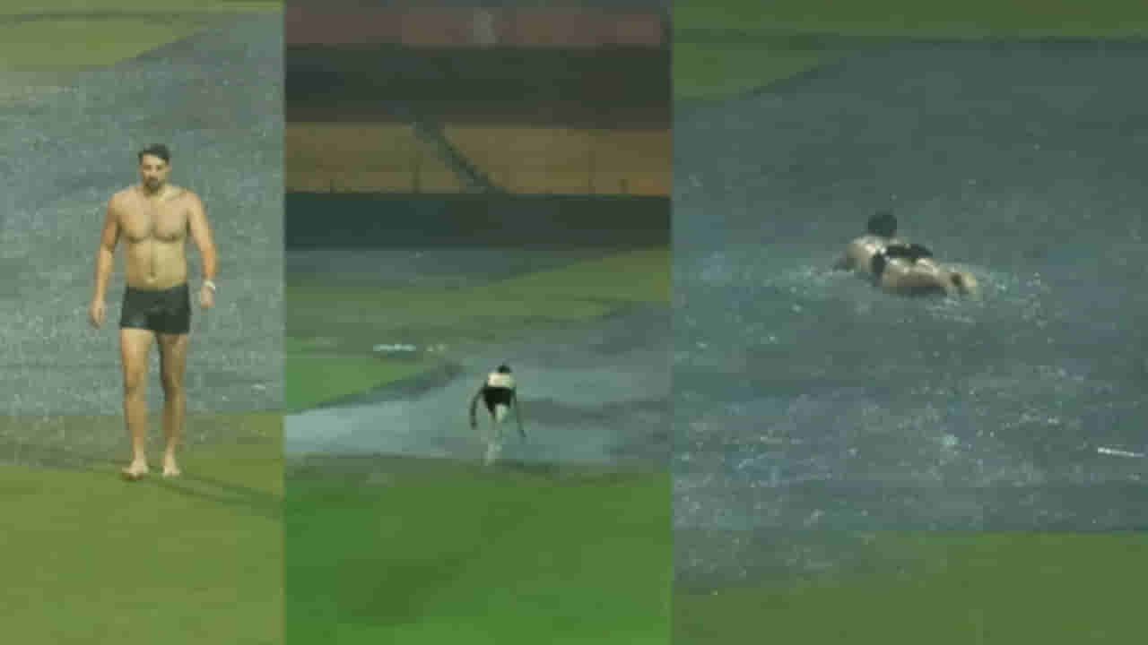 అయితే.. మ్యాచ్ జరుగుతుందా? లేదా? అనే విషయం పక్కనపెడితే బెంగళూరులో కురుస్తున్న వర్షానికి ఓ ఆర్సీబీ ప్లేయర్ మాత్రం ఫుల్గా ఎంజాయ్ చేస్తున్నాడు. అతనెవరో కాదు ఆర్సీబీ బీస్ట్ టిమ్ డేవిడ్. అద్భుతమైన షినిషింగ్ చేస్తూ సూపర్ హాట్ ఫామ్లో ఉన్న డేవిడ్ బెంగళూరులో కురుస్తున్న వర్షానికి చిన్నస్వామి స్టేడియంలో గ్రౌండ్ను కవర్స్తో కవర్ చేశారు. వాటిని నీళ్లు నిలిచి ఉన్నాయి. ఆ నీళ్లపై టిమ్ డేవిడ్ సరదాగా డై చేస్తూ ఎంజాయ్ చేశాడు. ఆ వీడియోలో టిమ్ డేవిడ్ను చూస్తుంటే.. ఒక బీస్ట్ను చూసినట్లు ఉందని నెటిజన్లు కామెంట్లు చేస్తున్నారు.