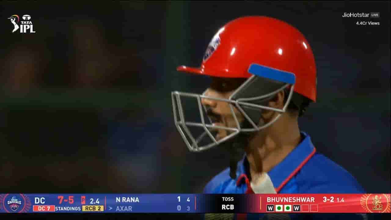 బెంగళూరు తరఫున బౌలింగ్ ప్రారంభించిన భువనేశ్వర్ కుమార్ అద్భుతమైన స్వింగ్తో ఢిల్లీ ఓపెనర్లను కంగుతినిపించారు. తన రెండు ఓవర్ల స్పెల్లో కేవలం 3 పరుగులు మాత్రమే ఇచ్చి 3 కీలక వికెట్లు పడగొట్టాడు. మరోవైపు జోష్ హాజల్వుడ్ తన వంతుగా 2 ఓవర్లు వేసి 6 పరుగులు ఇచ్చి 3 వికెట్లు సాధించాడు. వీరిద్దరి ధాటికి ఢిల్లీ బ్యాటింగ్ ఆర్డర్ పేకమేడలా కూలిపోయింది. సాహిల్ పరాఖ్, కె.ఎల్. రాహుల్, సమీర్ రిజ్వీ, నితీష్ రాణా వంటి స్టార్ ఆటగాళ్లు సింగిల్ డిజిట్ స్కోరుకే పెవిలియన్ చేరారు.