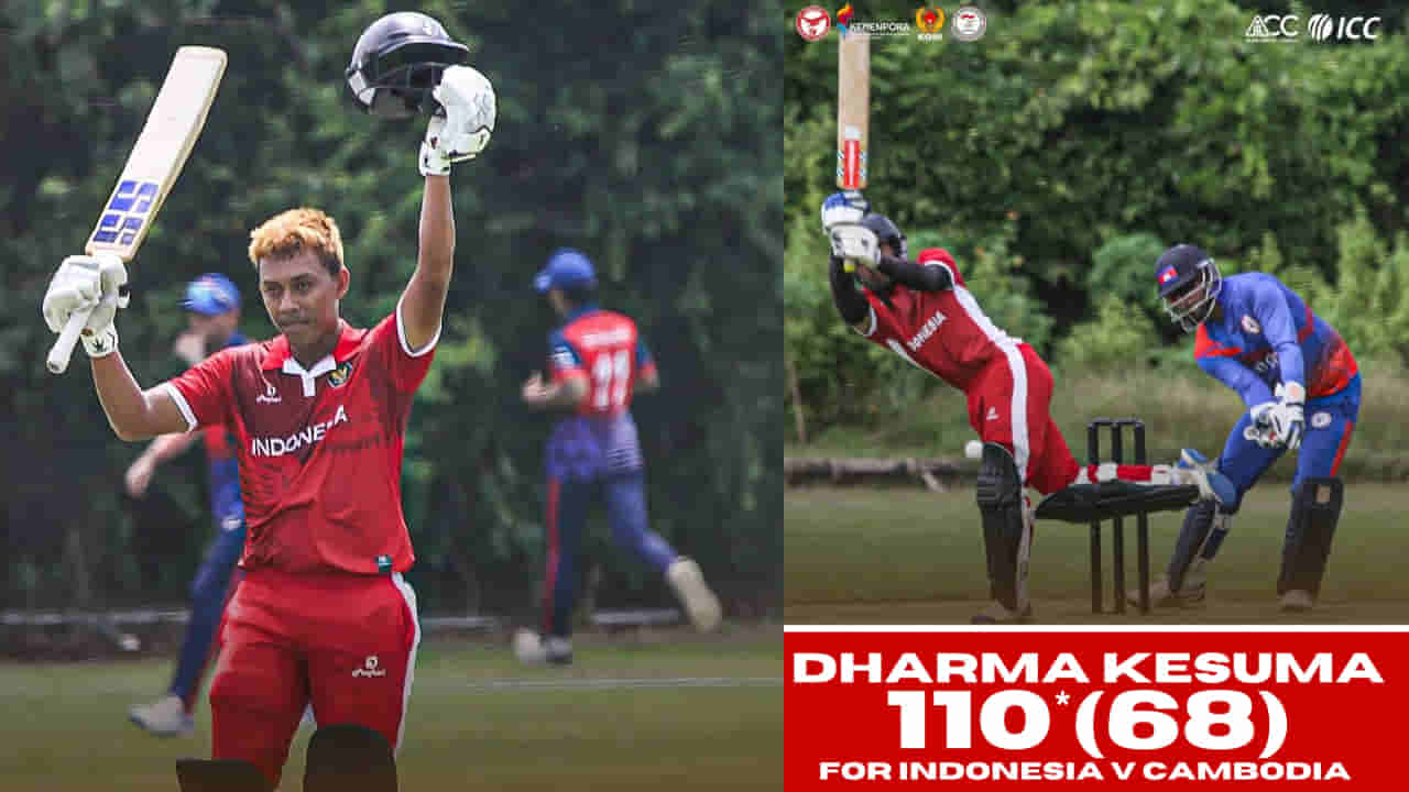 Dharma Kesuma : ఇండోనేషియా క్రికెట్ అనగానే మనకు పెద్దగా పరిచయం లేకపోవచ్చు.. కానీ ఆ దేశంలో ఒక బాహుబలి లాంటి బ్యాటర్ ఉన్నాడు. అతడే ధర్మా కేసుమా. ఇండోనేషియా క్రికెట్ చరిత్రలో సెంచరీలు అంటే కేవలం ఇతని పేరు మాత్రమే వినిపిస్తుంది. తాజాగా కంబోడియాతో జరిగిన టీ20 మ్యాచ్లో ఈ వికెట్ కీపర్ బ్యాటర్ మరోసారి సెంచరీతో విరుచుకుపడి తన దేశానికి ఒంటరి చేత్తో విజయాన్ని అందించాడు. డిసెంబర్ 23న బాలి వేదికగా ఇండోనేషియా, కంబోడియా మధ్య టీ20 ఇంటర్నేషనల్ మ్యాచ్ జరిగింది. ఈ మ్యాచ్లో ఓపెనర్గా బరిలోకి దిగిన 26 ఏళ్ల ధర్మా కేసుమా ఆరంభం నుంచే కంబోడియా బౌలర్లపై విరుచుకుపడ్డాడు. కేవలం 63 బంతుల్లోనే ఫోర్తో తన సెంచరీ మార్కును అందుకున్నాడు. మొత్తం 68 బంతులు ఆడిన ధర్మా, 110 పరుగులు చేసి నాటౌట్గా నిలిచాడు. ఇతని ఇన్నింగ్స్లో 8 ఫోర్లు, 6 భారీ సిక్సర్లు ఉన్నాయి. ధర్మా మెరుపులతో ఇండోనేషియా నిర్ణీత 20 ఓవర్లలో 5 వికెట్ల నష్టానికి 165 పరుగులు చేసింది.
