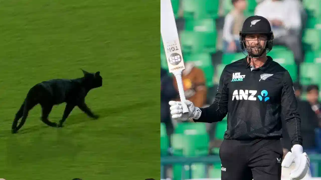 న్యూజిలాండ్ బ్యాటింగ్ చేస్తున్న సమయంలో, పిల్లి బౌండరీ తాళ్లను దాటి మైదానంలోకి వచ్చి కూర్చుంది. దాంతో మ్యాచ్ను కొన్ని నిమిషాలు నిలిపివేయాల్సి వచ్చింది. కెమెరాలు కూడా ఆ పిల్లిని ఫాలో అవుతూ దాని మీద ఫోకస్ చేశాయి. ఈ సంఘటనపై న్యూజిలాండ్ మాజీ బౌలర్ డానీ మోరిసన్ చమత్కారంగా స్పందిస్తూ, “మైదానంలో బ్లాక్ క్యాప్స్ (న్యూజిలాండ్ జట్టు) తో నల్ల పిల్లి కలిసింది!” అంటూ సరదాగా వ్యాఖ్యానించాడు.